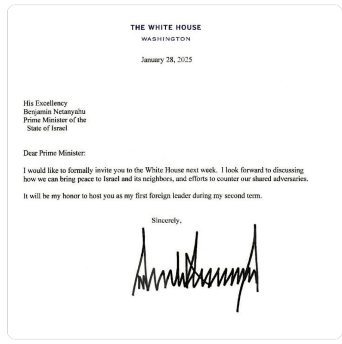 Ob Netanyahu in vorauseilendem Wunschdenken seinen Besuch bei Trump bekannt gab, bevor er eine Einladung hatte, bleibt wohl auf ewig sein Geheimnis. Jedenfalls hat er gestern die offizielle Einladung erhalten und kann am Sonntag losfliegen. Sein Besuch bei Trump findet am Dienstag statt. Der Rückflug ist für Donnerstag geplant. Genug freie Zeit also, um einen Tag in Miami mit Ehefrau und Sohn zu verbringen. Dem ersten Besucher eines neunes Präsidenten wird immer eine besondere Bedeutung zugemessen. Netanyahu wird jetzt vor Stolz platzen!