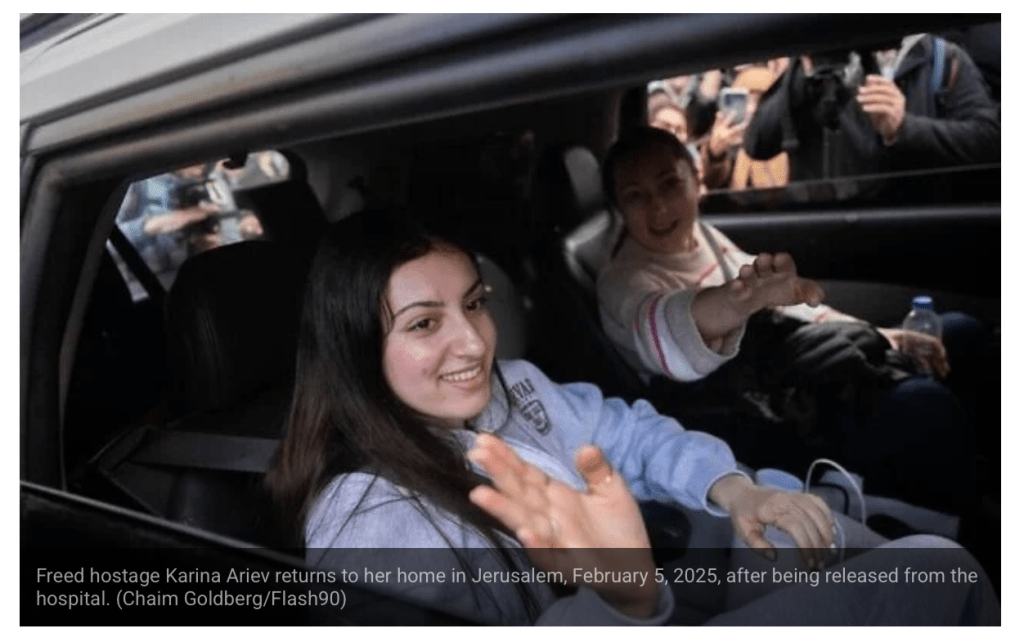 Die gute Nachricht des Tages: Vier der fünf Soldatinnen, die am 26. Januar nach weit mehr als 450 Tagen aus der Geiselhaft freigelassen wurden, konnten heute das Krankenhaus verlassen. Liri Albag, Naama Levy, Daniella Gilboa und Karina Ariev werden nun ambulant weiter behandelt. Ihre Freundin und Kollegin Agam Berger, die einige Tage nach ihnen freigelassen wurde, bleibt noch für ein paar Tage im Spital.