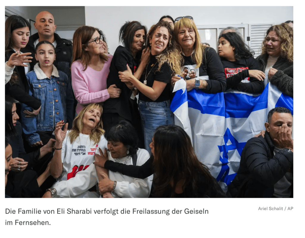 Mit einer Verspätung von mehr als drei Stunden gab die Hamas gestern die Namen der drei Geiseln bekannt, die heute freigelassen wurden. Es sind: Eli Sharabi, Or Levy und Ohad Ben Ami.