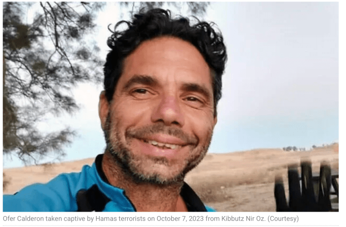 Ofer Calderon bekam seine Peiniger selten zu sehen. Waren sie in der Nähe, wurde er oft in einen dunklen Raum gesperrt. Calderon war gemeinsam mit zwei seiner Kinder, Erez und Sahar, aus dem Kibbutz Nir Oz verschleppt worden, die Kinder wurden im November freigelassen. Die Terroristen hielten ihn für einen Reserve-Soldaten und behandelten ihn dementsprechend schlecht. Es gelang ihm bis zu seiner Freilassung nicht, sie vom Gegenteil zu überzeugen. Erkennbar wurde das, als er bei der ‘Übergabe-Zeremonie’ in einer olivfarbenen Phantasieuniform erscheinen musste.