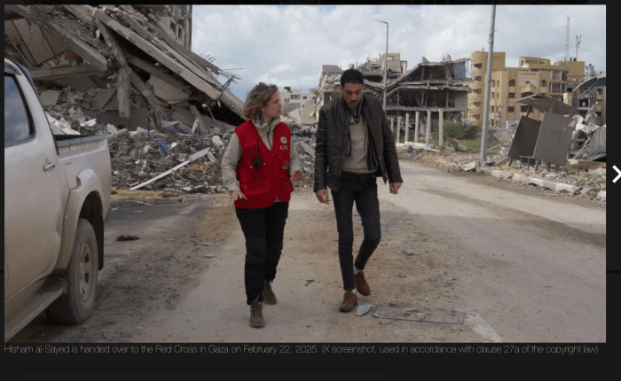 Die sechste und für diese Phase letzte lebende Geisel, Hisham al-Sayed wird angeblich ohne begleitende Zeremonie in Gaza City an das IRK übergeben werden. Das berichtete al-Jazeera. Am frühen Nachmittag wurde er dann tatsächlich völlig formlos an eine Mitarbeiterin des IRK übergeben, die ihn zur IDF fuhr.