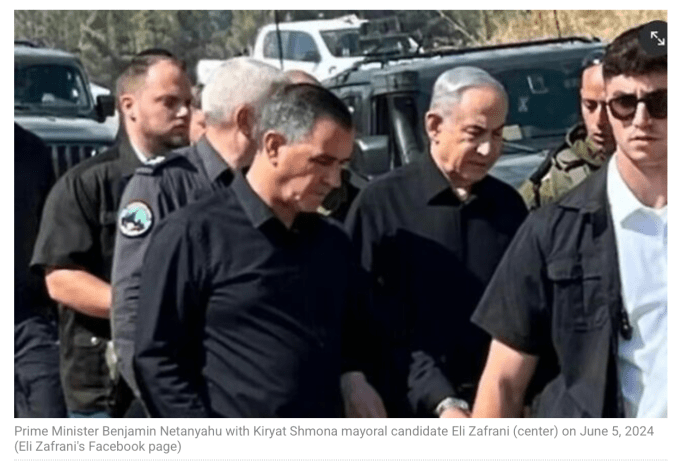 Zur Erinnerung: Am 5. Juni 2024 besuchte Netanyahu Kiryat Shmona, traf sich publikumswirksam mit ‘seinem Kandidaten’ Eli Zafrani und weigerte sich auch den damaligen BM Avichai Stern zu treffen. Den entsprechenden Artikel findet ihr hier.