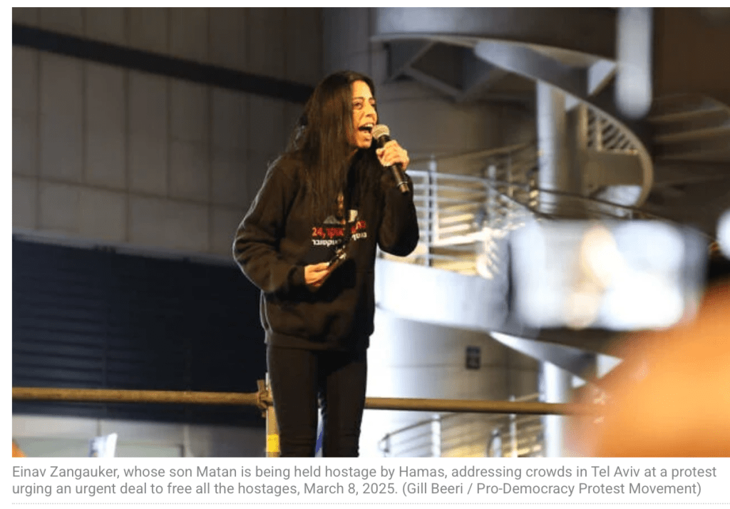 Bei einer anderen Veranstaltung greift eine Gruppe von betroffenen Familien Netanyahu ebenfalls an: «Wir befinden uns in einer Notsituation und dürfen uns nicht von Berichten blenden lassen: Der Krieg könnte diese Woche wieder beginnen», sagt Einav Zangauker, deren Sohn Matan als Geisel im Gazastreifen festgehalten wird. Zangauker fügt hinzu, dass die Fortsetzung des Krieges im Interesse des Premierministers liegt, da er so sein laufendes Strafverfahren verlängern, eine staatliche Untersuchungskommission zur Kriegsführung aufschieben und seine Regierung mit seinen rechtsextremen Verbündeten aufrechterhalten könnte. Yifat Calderon, die Cousine von Ofer Calderon, der letzten Monat im Rahmen des Abkommens freigelassen wurde, beschuldigt Netanyahu, die Verhandlungen über die zweite Phase des Abkommens zu stoppen. «Netanyahu ist bereit, die Geiseln für seine persönlichen und kriminellen Interessen zu opfern.»