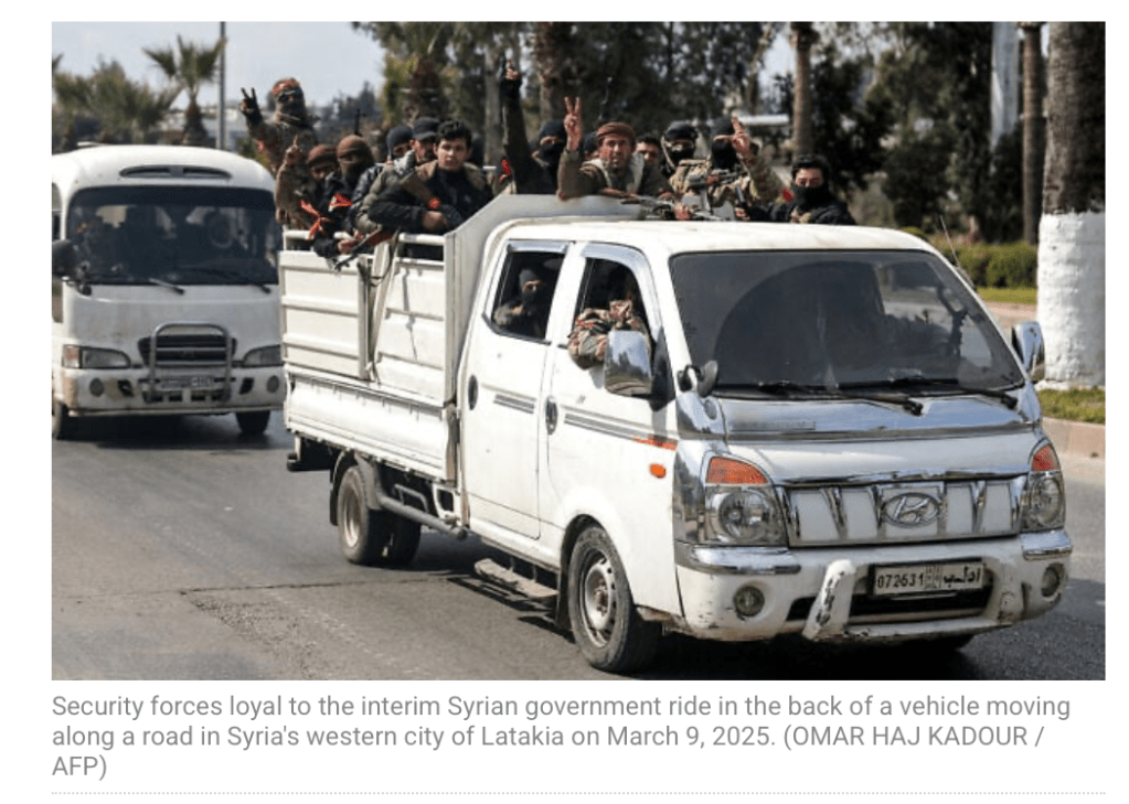 Nachdem die ersten Meldungen noch unklar waren, stellt es sich nun immer mehr heraus, dass die mittlerweile mehr als 1.500 Alewiten von Truppen der neuen syrischen Regierung wahllos ermordet wurden. Unter den Toten sollen sich 745 Zivilisten, 148 Mitglieder der Assad-treuen Milizen und 125 Sicherheitsbeamte befinden. Insgesamt sollen 30 Massaker stattgefunden haben, bei denen die Zivilisten wahllos erschossen wurden. Neben der alewitischen Minderheit in der Küstenregion wurden auch einige christliche Dörfer angegriffen. Die Alewiten waren unter Präsident Baschar al-Assad regierungstreue Anhänger des Regimes. Jetzt gelten sie ebenso wie die Christen als Minderheiten. Das syrische Verteidigungsministerium kündigte an, die ‘gross angelegte Sicherheitsoperation’ beendet zu haben. Ein Sprecher des Ministeriums erklärte, dass alle Ziele erreicht wurden. «Wir waren in der Lage, die Angriffe der Überreste des gestürzten Regimes und seiner Offiziere abzuwehren und sie von wichtigen Orten zu vertreiben.» Der interemistische Präsident Ahmed al-Sharaa, dessen islamistische Gruppe die Offensive anführte, die Assad im Dezember stürzte, hat geschworen, «alle, die am Blutvergiessen unter der Zivilbevölkerung beteiligt waren, zur Rechenschaft zu ziehen, und zwar entschlossen und ohne Nachsicht.» In einer Antwort an den israelischen VM Israel Katz sagte er: «Seine Kommentare sind völliger Blödsinn, sie sind die letzten, die sich aufregen dürfen.» Dabei bezog er sich offenbar auf die hohen Opferzahlen in Gaza und die Kritik von Katz der ihn als: «Einen dschihadistischen Terroristen der Al-Qaida-Schule, der schreckliche Taten gegen die Zivilbevölkerung begeht», bezeichnet.