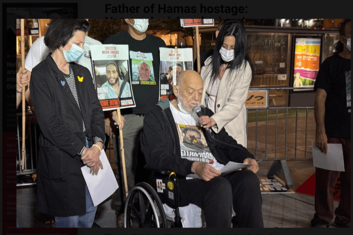 Der Vater von Yair und Eitan Horn kam gestern, noch schwer gezeichnet von einer Operation, zum ‘Platz der Geiseln’, um sich an Netanyahu zu wenden. «Dies ist der 526. Tag, an dem 59 Geiseln in der Hölle von Gaza festgehalten werden“, sagte Itzik Horn während einer Presseerklärung zusammen mit anderen Angehörigen von Geiseln in Tel Aviv. «Ich bin heute hierher gekommen, um Netanyahu einen Spiegel vorzuhalten, während ich mich von einer Operation erhole. Dieser Spiegel zeigt die schrecklichen Ergebnisse von Netanyahus Selektionen.» Sein Sohn Yair wurde vor wenigen Wochen aus der Geiselhaft freigelassen, während Eitan noch immer in Gaza festgehalten wird. «Der Premierminister der Juden lässt Juden im Stich, die einen Holocaust durchleben. Netanyahu, schau mir in die Augen … Wir fordern, dass du den Krieg sofort beendest und alle auf einmal zurückbringst, und zwar jetzt.»