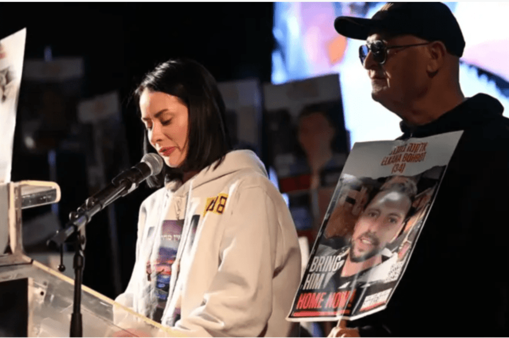 Nachdem die Familien von Elkana Bohbot und Yosef Haim Ohana der Veröffentlichung des Videos zugestimmt hatten, das die Hamas mit den beiden Geiseln ‘produziert’ hatten, meldete sich Rivka Bohbot zu Wort. Rivka war vor neun Jahren aus Kolumbien eingewandert und versucht, seit ihr Mann am 7. Oktober 2023 vom Musik-Festival nach Gaza verschleppt wurde, die Hilfe des pro-palästinensisch kolumbianischen Präsidenten zu erhalten, um ihren Mann zu befreien. Bis ihr das Video auf ihr Handy zugespielt wurde, hatten sie und die Familie ihres Mannes keinen Kontakt mit den Medien und gaben auch keine Interviews. Innerhalb der Gruppen von Familienangehörigen hatte sie gehört: «Stellt Elkana nicht in den Vordergrund.» Warum? Sie weiss es nicht. Heute bedauert sie, nicht in die Medien gegangen, nicht laut gekämpft zu haben. «Wir blieben an der Seitenlinie, anstatt hinauszugehen und zu kämpfen, aus dem Wunsch heraus, ihn zu beschützen. Wir wollten nicht, dass er an vorderster Front steht, und am Ende blieb er zurück. Als die Hamas und die Regierung sich darauf einigten, wer in Phase 1 freigelassen werden sollte, hätte Elkana dabei sein müssen. Er hat Asthma und hat ein Kind. Mein Kind hat universelle Rechte. Für ihn ist sein Vater verloren. Ein Kind braucht Antworten.» Rivka weiss, wie wir alle es wissen, dass die verbliebenen 59 Geiseln gefoltert werden, gequält, ausgehungert. «Es ist unfassbar, 537 Tage hat er den Missbrauch und den Hunger am eigenen Leib erlebt.» Deshalb beschloss Rivka, dass sie nicht mehr ‘zu Hause sitzen’ konnte.