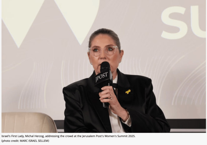 Israels First Lady Michal Herzog forderte auf der ‘Women Leaders Summit der Jerusalem Post’ die Bildung einer eigenen Untersuchungskommission, die klären soll, warum die Warnungen der Soldatinnen der Aufklärungs-Einheit 8200 von Nahal Oz nicht gehört wurden. Kurz zuvor hatte sie ein Treffen mit betroffenen Eltern und berichtete: «Die jungen Frauen, die Soldatinnen, haben ihren Vorgesetzten berichtet, was sie gesehen haben. Aber wurden sie abgewimmelt, weil sie junge Frauen waren?» Der Verdacht liegt nahe. Michal forderte, nach Antworten zu suchen. Dabei betonte sie, dass es für sie als Ehefrau des Präsidenten keine offizielle Position und somit auch keine offizielle Möglichkeit der Einflussnahme gibt. Aber es wäre nicht Michal, wenn sie nicht sofort auch einen Problemlöser bei der Hand hätte.