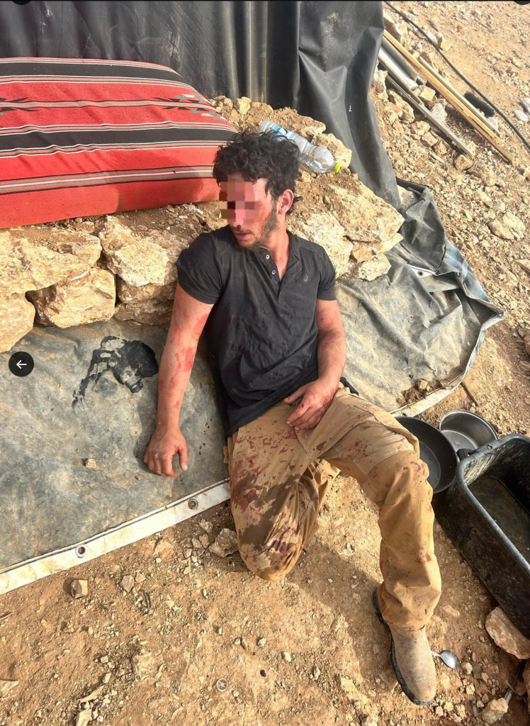 Haaretz schildert den Vorfall so: Palästinensische Bewohner berichteten, dass sechs Männer des Dorfes von 13 jüdischen Siedler-Terroristen, teilweise bewaffnet, angegriffen wurden. Ein Video zeigt einen Vater und seinen Sohn, aus Kopfwunden blutend auf dem Boden liegend. Vier der Verwundeten seien ins Krankenhaus gebracht worden, zwei mussten sich Operationen unterziehen und liegen auf der Intensivstation. Von der IDF, die nach einer Stunde eintraf, wurden alle Männer des Dorfes, mehr als 26 festgenommen. Sie wurden aus den Häusern geholt und mussten sich mit Handschellen gefesselt und mit verbundenen Augen in einer Reihe aufstellen. «Die Soldaten sagten uns, dass es uns verboten sei, mit einem Siedler zu sprechen, der in ein Haus kommt. Wir müssen das Haus betreten, es abschliessen und ihn tun lassen, was immer er will», sagte Younes, ein Mitglied des Regionalrates. Dem Angriff zuvor gegangen war ein palästinensischer Angriff auf zwei jüdische Schäfer. Beide wurden leicht verletzt. «Die Streitkräfte griffen ein, um den Zusammenstoss aufzulösen, und nahmen in der Nähe des Ortes verdächtige Palästinenser fest.»