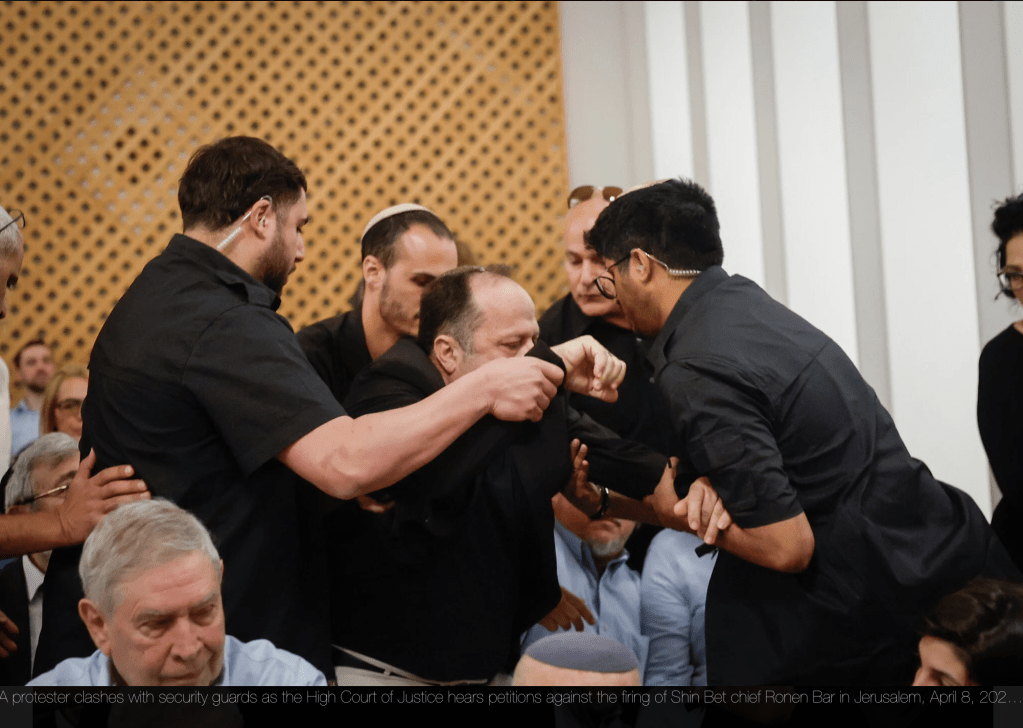 Die Anhörung zu den Petitionen gegen die Entlassung von Ronen Bar, Chef des Shin-Bet, wurde nach mehrfacher Unterbrechung ohne Publikum fortgesetzt. Zuvor hatte der Präsident des OGH, Isaac Amit, MK Tally Gotliv, Schreihälsin des Likud, aus dem Raum entfernen lassen. Gotliv verweist auf ihre parlamentarische Immunität, der zufolge sie nicht aus dem Saal verwiesen werden dürfe.
