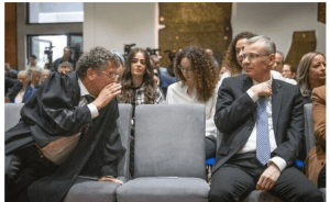 OGH Präsident Isaac Amit wandte sich in seiner Rede direkt an JM Yariv Levin: «Ich bitte Sie, Herr Minister, kehren Sie auf den Weg zurück, um mit der Gerichtsbarkeit zu sprechen.»