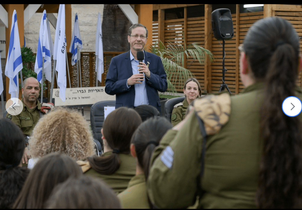 Am Tag vor Beginn des Pessach Festes traf sich Präsident Herzog stellvertretend für die Soldaten der gesamten IDF mit einem Bataillon der 636. Division: «Anlässlich des Pessachfestes habe ich mich gefreut, die Kämpfer der 636. Einheit zu treffen und mit ihnen ein Glas Wein zu Pessach zu erheben. Ich war begeistert, den pulsierenden Geist dieser Generation wiederzusehen – mit Stolz, Mission und grosser Verantwortung. Unsere Mädchen und Jungen sind die Beschützer des Landes Israel.