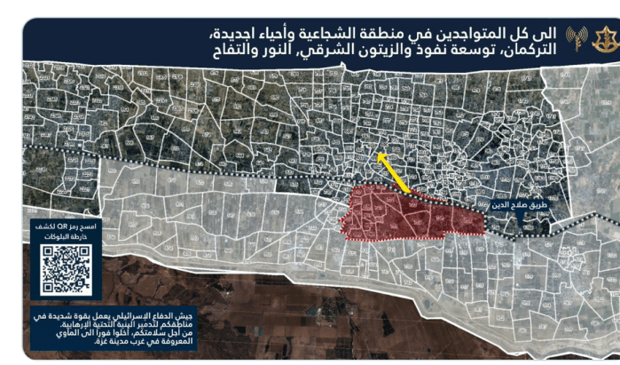 Für den Osten von Gaza-City gab es heute Aufforderungen, das Gebiet sofort zu verlassen und sich in sichere Gebiete im Westen der Stadt zu evakuieren. Die betroffenen Stadtviertel werden in Kürze zur Kampfzone deklariert.