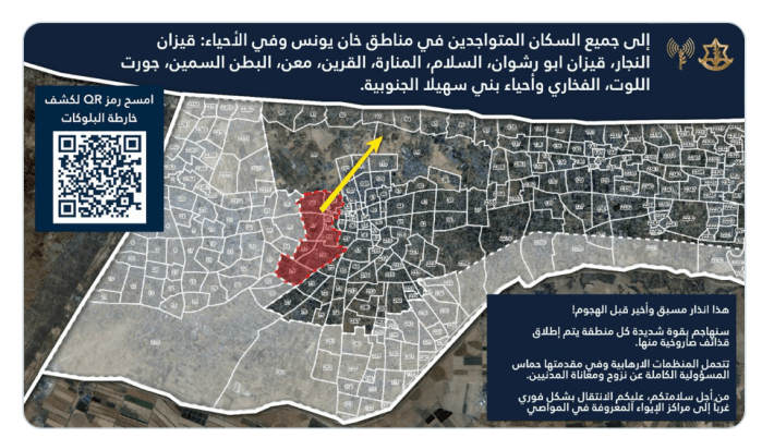 Erneut wurde ein Teil von Kahn Younis zu Kampfzone erklärt. Die Bewohner der Region wurden aufgefordert, sich sofort in den nordwestlich gelegenen Sicherheitsbereich zu evakuieren. Nur 30 Minuten zuvor wurden erneut zwei Raketen aus Gaza in Richtung Israel abgefeuert. Eine der Raketen wurde abgefangen, die andere stürzte über offenem Gebiet ab.