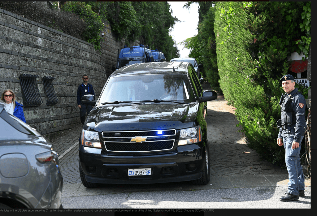 Die Botschaft des Omans in Rom ist heute Gastgeber für die zweite Runde der Gespräche zwischen den USA und dem Iran. Auf ihrer Webseite dankt die Botschaft dem italienischen Staat für die unschätzbare Hilfe bei den Vorbereitungen für dieses ‘wichtige Treffen’. Am Mittag trifft die iranische Delegation, eskortiert von Carabinieri, in der Botschaft ein. Der iranische Aussenminister Abbas Araqchi und Trumps Nahost-Beauftragter Steve Witkoff werden indirekt über einen omanischen Beamten verhandeln. Der wird Botschaften zwischen den beiden Seiten übermitteln, wie iranische Beamte eine Woche nach einer ersten Runde indirekter Gespräche in Maskat mitteilten, die beide Seiten als konstruktiv bezeichneten. Diese Art von ‘Treppenhausdiplomatie’ wurde schon bei früheren Waffenstillstandsverhandlungen zwischen Israel und der Hamas betrieben.