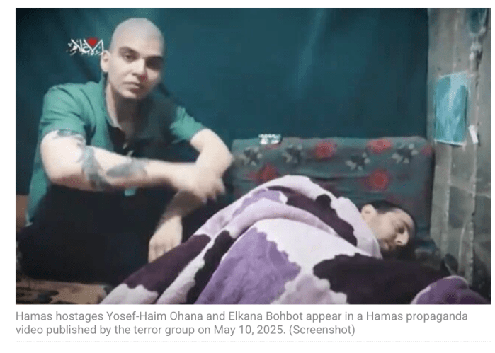 Die Hamas hat heute ein Video veröffentlicht, in dem die beiden Geiseln Elkana Bohbot, 35, und Yosef Haim Ohana, 24, zu sehen sind. Die Familien haben gebeten, das Video noch nicht zu veröffentlichen. Bereits im März hatte die Hamas ein Video mit den beiden veröffentlicht.