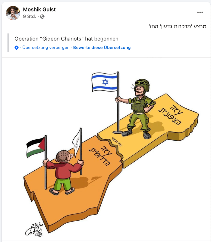 Wie gestern bereits von Oppositionsführer Yair Lapid bemerkt hatte, betont heute auch das ‘Forum für Geiseln und vermisste Familien’, dass Israel nur noch wenige Stunden habe, um zu einem Deal mit der Hamas zu kommen. Während Lapid die Situation gestern noch positiv bewertete (s. gestern), sehen die betroffenen Familien heute ein ganz anderes Szenario. Israel hatte angekündigt, unmittelbar nach dem Ende des Besuchs von Trump im Mittleren Osten mit der Verstärkung der Offensive in Gaza zu beginnen. Die Abreise Trumps steht unmittelbar bevor. «Die verpasste historische Chance – ein eklatantes Versagen Israels. Die Bemühungen, die vorliegenden Vorschläge zu blockieren, werden für immer in Erinnerung bleiben», heisst es in der Erklärung. «Dies sind entscheidende Stunden, Stunden, die über die Zukunft unserer Angehörigen, die Zukunft der israelischen Gesellschaft und die Zukunft des Nahen Ostens entscheiden werden. Wir fordern den Premierminister und den Präsidenten der Vereinigten Staaten dringend auf, einen Durchbruch zu erzielen.» Das weitaus aggressivere ’Tikwa Forum’ hingegen verlangt nach wie vor die vollständige Zerschlagung der Hamas und die Verstärkung der Operationen gegen den Gazastreifen.