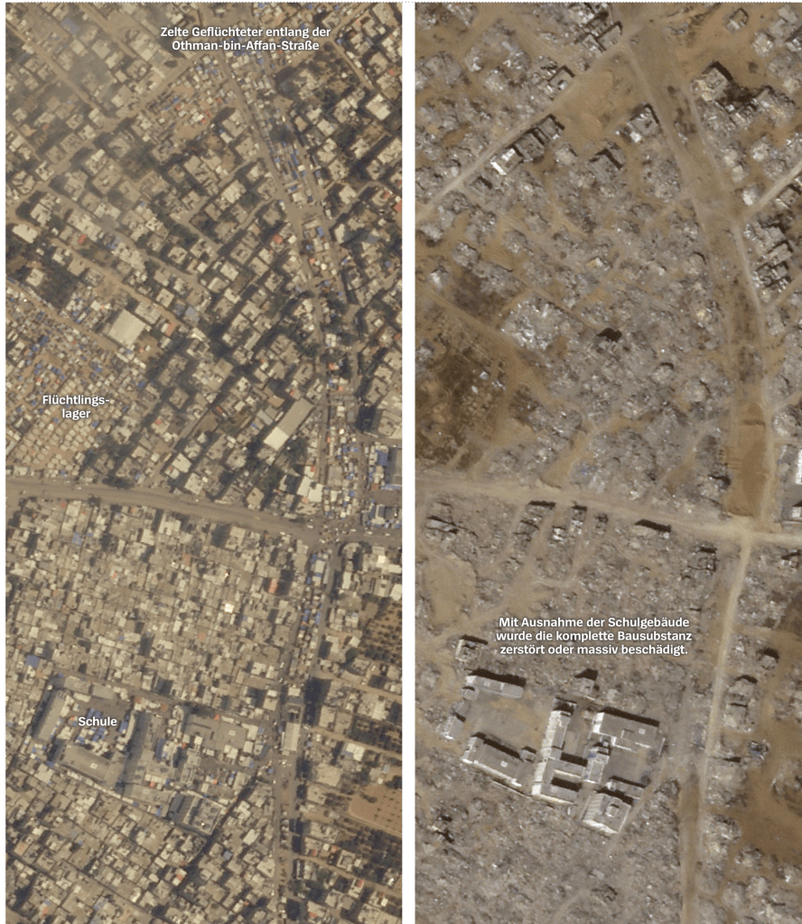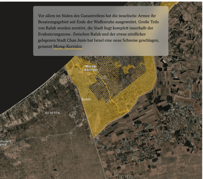 Die Zerstörung entlang des Morad-Korridors und der Stadt Rafah © wie oben