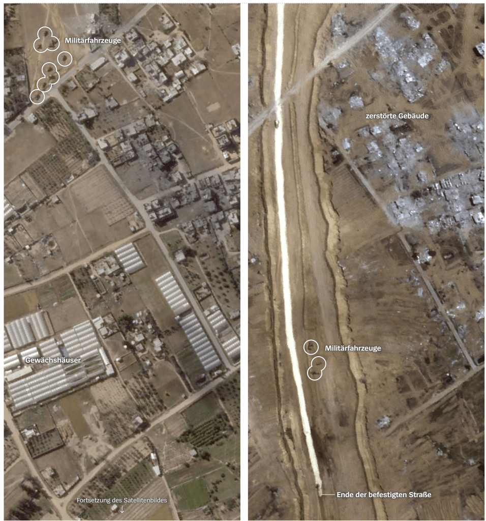 Über Nacht wurden die Angriffe der IDF/IAF deutlich verstärkt, Bodentruppen näherten sich der Deir al-Balah Strasse, die den Norden des Gazastreifens mit dem Süden verbindet. Damit begann die ‘Operation Gideons Streitwagen’. Ziel dieser verstärkten Offensive ist es, die Hamas zum Aufgeben zu zwingen und die Geiseln, sowohl die lebenden als auch die toten freizulassen, resp. an Israel zu übergeben. Die noch im Norden des Landes lebenden Zivilisten sollen südlich des ‘Morag-Korridors’ evakuiert werden. Die Evakuierungs-Aufforderung betrifft auch Flüchtlingslager in Jabaliya, Tel al-Zaatar und Beit Lahiya. Vereinzelt soll es zur Bombardierung von Zeltlagern gekommen sein.