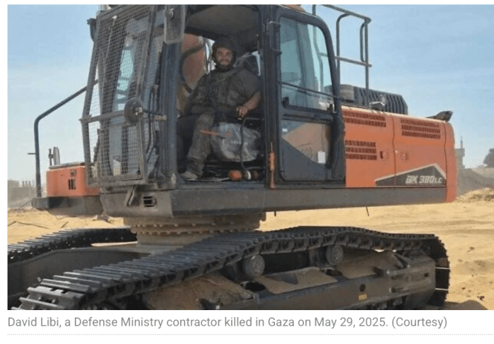 David Libi, 19, s’’l wurde durch die Explosion einer Sprengfalle in der Region von Jabaliya getötet. Libi, ein Bauunternehmer aus Malachai Shalom in Samaria, arbeitete mit seinem schweren Abbruchgerät als ziviler Angestellter der IDF.