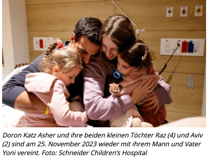 Gadis Exfrau, Margalit, wurde im November freigelassen. Sie lehnte eine Einladung von Netanyahu mit der Begründung ab, sie wolle nicht für ein PR-Foto herhalten, solange ihre Freunde noch in den Tunnels von Gaza leiden. «Ich sehe keinen Grund, zu einem Treffen mit einer Person zu gehen, die mit ihren Handlungen beweist, dass die Freilassung der Geiseln nicht zu ihren obersten Prioritäten gehört und sie dem Tod überlässt.» Das war im November 2023!