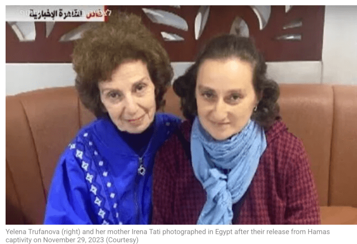 Sharons Schwester, Danielle und ihre kleine Tochter Emilia wurden ebenfalls verschleppt, kamen aber Ende November frei. Danielle hatte kurz nach ihrer Freilassung über die Zeit der Gefangenschaft berichtet. «Wir wurden von unserer Familie getrennt. Auf dem Weg nach Gaza wurden wir von einem Mob geschlagen und bespuckt. Die Menge johlte und ich bemühte mich, dass Emilia nicht viel davon mitbekam. Sie hat all ihre Kraft aus mir geschöpft. Ein Kind darf nicht depressiv werden. Ein Kind darf keine Hoffnungslosigkeit erleben. Du sagst dir: ›Ich werde alles tun, alles, damit mein Mädchen dieses Trauma so reibungslos wie möglich übersteht‹. Und dann tust du alles.» Die alleinerziehende Mutter beschrieb auch, dass sie um ihrer Tochter willen, um Essen oder die Möglichkeit, sich zu waschen, gebettelt habe.