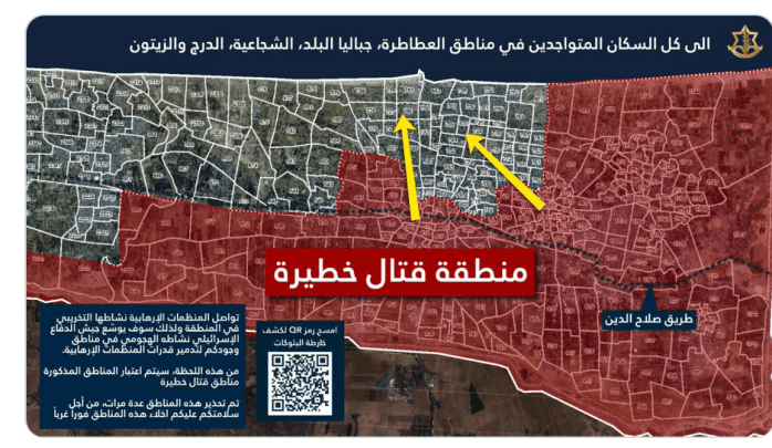 Die IDF gab gestern eine erweiterte Evakuierungsanweisung für den nördlichen Gazastreifen heraus. Er gilt für die Ortsteile: Shejaiya, Daraj, and Zeitoun. Die Menschen werden aufgefordert, sich unverzüglich in ausgezeichnete westliche Gebiete zu begeben. Die genannten Regionen werden zu ‘gefährlichen Kampfzonen’ erklärt. Die für Gazaner frei zugänglichen Gebiete des gesamten Gazastreifens werden mit etwa 23 % beziffert.