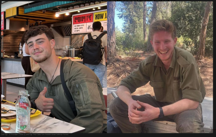 Die IDF gab gestern die Namen der zwei am Freitag durch den Einsturz eines verminten Hauses getöteten Soldaten bekannt. Sgt. First Class Tom Rotstein, 23, und Staff Sgt. Uri Yonathan Cohen, 20, s’’l, wurden Opfer eines Hinterhalts in einem Haus in Rafah, bei dem insgesamt vier Soldaten getötet und fünf weitere teils schwer verletzt wurden. Rotstein und Cohen konnten nur anhand von DNA-Proben identifiziert werden