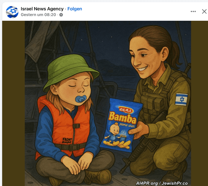 Greta Thunberg, die nur wenige Stunden die israelische Gastfreundschaft genossen hat, gab bei ihrer Ankunft in Schweden ein interessantes Interview. «Wir wurden schlecht behandelt. Ich möchte einfach nur duschen und schlafen.» Omar Fayad, ein französisch-ägyptischer Journalist, der ebenfalls auf der Madleen mitgereist war, erklärte sogar, Thunberg sei während ihres Aufenthaltes in Israel ‘misshandelt’ worden. Ihm zufolge betrat eine israelische Polizistin wiederholt Thunbergs Zimmer, spielte Kinderlieder auf ihrem Handy und tanzte vor ihr, um sie am Schlafen zu hindern. Abgesehen, davon dass die Kinderlieder wohl den Geschmack von Thunberg getroffen hätten, kann ich mir beim besten Willen nicht vorstellen, dass dieser Bericht der Wahrheit entspricht. Zur Erinnerung: die Madleen ist in der Nacht auf gestern gegen 02:00 festgehalten worden. Gegen Morgen erreichte das Boot den Hafen von Ashdod. Ihr Abflug mit LY 323 startete um 10:00. Vor dem Abflug gab es noch Befragungen, eine Gesundheitsuntersuchung…. für Musik, Tänze und Schlaf war da offensichtlich keine Zeit.