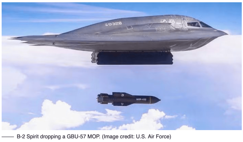 Zwei B-2-Bomber der US-amerikanischen Luftwaffe sind unterwegs von der ‘Whiteman Air Force Base’ in Missouri auf die im Pazifik liegende Insel Guam. Die B-2-Tarnkappenbomber sind die einzigen Flugzeuge, die die GBU-57 MOP-Bomben tragen können. Aufgrund des hohen Gewichts können die Flugzeuge jeweils nur zwei Bomben mit sich führen. Insgesamt wiegt die Rakete 13.6 Tonnen, davon sind allein 2.400 kg Sprengladung. Nach dem Abwurf übernimmt eine GPS-Steuerung den zielgenauen Flug. In einer Tiefe von etwa 60 m unter der Erdoberfläche explodiert die Sprengladung. Die letzte, von Israel noch nicht angegriffene Aufbereitungsstätte, Frodo, liegt wahrscheinlich 60 – 90 m unter der Erde. Obwohl die Hallen damit tiefer liegen, hofft Israel, dass die GBU-57 die meisten Labors zerstören wird, ohne dass es zu einem nuklearen Super-Gau kommt. Dass die beiden Bomber nun in die ‘Nähe’ des Iran verlegt werden, spricht dafür, dass Trump beschliessen wird, sich am Kampf Israel gegen den Iran zu beteiligen.
