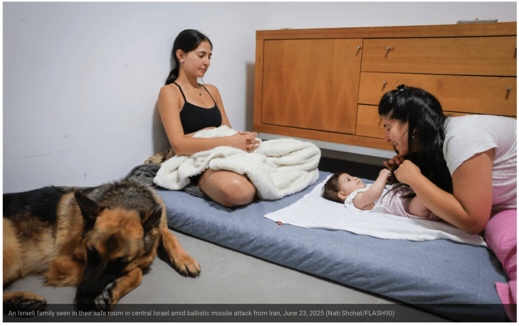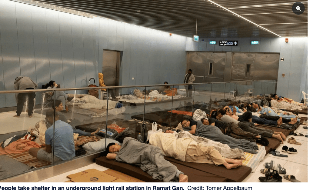 In Israel wurde fast flächendeckend der Alarm ausgelöst und nahezu alle Bürger wurden wieder einmal in die Schutzräume und Bunker geschickt. Im Süden Tel Avivs sind in den teils improvisierten unterirdischen Schutzräumen seit einigen Tagen Zeltstädte aufgestellt worden, um den Menschen die Möglichkeit zu geben, dort einige Stunden in der Nacht Ruhe zu finden. Der Süden Tel Avivs ist, was private Schutzräume angeht, sehr schlecht ausgestattet. Auch öffentliche Schutzräume gibt es kaum, sodass nur Tiefgaragen oder sogar Brücken zur Verfügung stehen. Der Iran hatte etwa 15 Raketen nach Israel abgeschossen, die alle abgefangen werden konnten. Bei einer zweiten Salve nur wenige Minuten später wurde in Ashdod ein Haus getroffen. Es entstand Sachschaden.