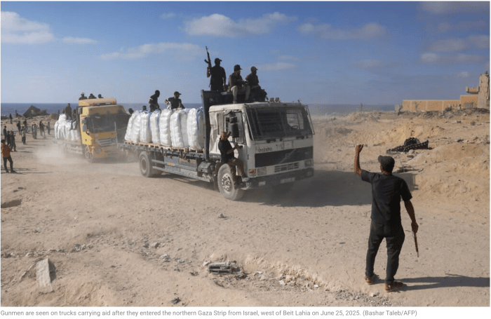 Ein heute Vormittag aufgenommenes Video zeigt, dass bewaffnete Terroristen erneut Lkws mit Hilfsgütern und Lebensmitteln im Norden des Gazastreifens stehlen. Im Video sind auch Schüsse zu hören. Netanyahu und VM Katz haben die IDF aufgefordert, innert 48 Stunden wirksame Methoden zu finden, um die Hamas daran zu hindern, immer wieder Hilfslieferungen zu stehlen. Bis dahin hat Israel sämtliche Lieferungen in den Norden eingestellt. Smotrich sieht in den Diebstählen wieder einmal einen Grund, seinen Austritt aus der Regierung anzukündigen. Bis vor Kurzem war er noch einer der schärfsten Gegner der Lieferungen an die Zivilisten in Gaza.
