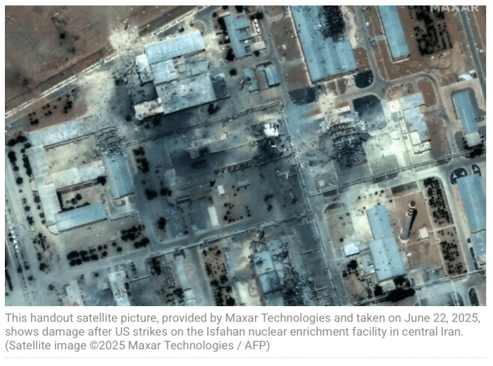 CNN berichtet, dass beim US-amerikanischen Angriff auf Isfahan keine Bunker-Bomben (MOP) zum Einsatz kamen. Die Anlage liegt so tief unter der Oberfläche, dass der Einsatz sich wahrscheinlich nicht gelohnt hätte. Dieser Ansicht ist zumindest ein hoher US-amerikanischer General. Zum Einsatz kamen Tomahawk-Raketen, die von Schiffen aus abgefeuert wurden. Das Militär geht davon aus, dass etwa 60 % des hoch angereicherten Uraniums hier gelagert wurden. Die MOP wurden nur in Fordo und Natanz eingesetzt.