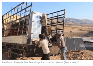 Die komplette beduinische Gemeinschaft des Dorfes Mu’arjat, nördlich von Jericho, ist aus ihrem Dorf geflohen. Jüdische Siedler-Terroristen aus den umliegenden illegalen Siedlungen haben die Bewohner des Dorfes in den letzten Monaten regelmässig schikaniert, ihnen das Vieh gestohlen und Menschen angegriffen. Zuletzt hatten die jüdischen Siedler-Terroristen einen neuen ‘Aussenposten’ in unmittelbarer Nähe der Dorf-Schule errichtet. Die Eigentümer der Häuser wurden vertrieben und ihr Eigentum wurde gestohlen. Israelische Sicherheitskräfte griffen nicht ein. Das ist es, was die rechte Regierung von Netanyahu stillschweigend akzeptiert und was von seinen rechts-extremen Koalitionspartnern tagtäglich praktiziert wird. Eine erzwungene Vertreibung der palästinensischen Bewohner, um selbst mehr Land für neue Siedlungen in Samaria und Judäa zu gewinnen.