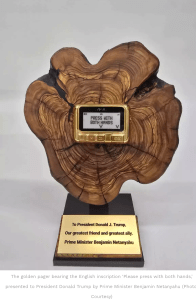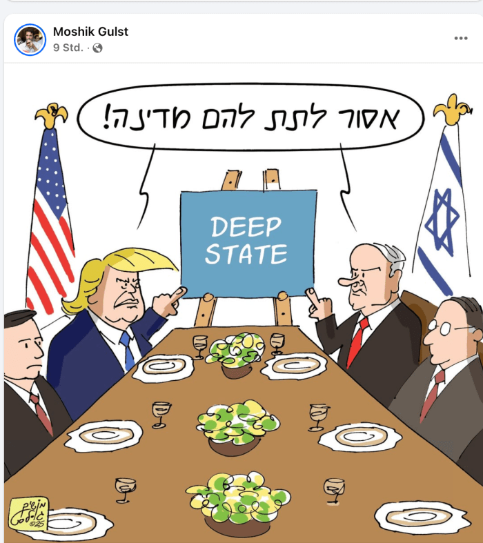 P.S. die Gastgeschenke, die Netanyahu für Trump im Gepäck hat, werden immer geschmackloser. Beim ersten Besuch war es ein goldener Pager, der an die im Libanon zur Detonation gebrachten Pager erinnerte. Jetzt war es eine Mesusa, die die Form eines B-2 Bombers hatte.