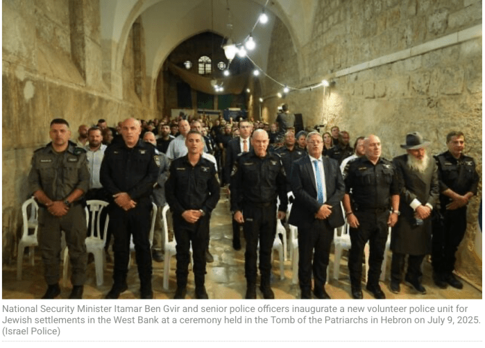 Der rechtsextrem-nationalistische Ben-Gvir hat eine neue Freiwilligen-Einheit, bestehend aus jüdischen Siedler-Terroristen aus Samaria und Judäa, für dieses Gebiet ins Amt eingeführt. Die feierliche Einführung fand am ‘Grab der Patriarchen’[1] in Hebron statt. «Diese Trupps stellen eine Abkehr von der ‚defensiven Denkweise‘ und eine Hinwendung zu einer kämpferischen, militanten und offensiven Denkweise dar», sagte der rechtsextreme Minister, der selbst in Kiryat Arba, neben Hebron in Judäa wohnt. Die Hilfssheriffs erhielten eine mehrwöchige Ausbildung in Terrorismusbekämpfung und besondere Polizeibefugnisse. Sie wurden mit modernster Kampfausrüstung wie Waffen, taktischen Uniformen und Schutzausrüstung ausgestattet. Man muss jetzt leider davon ausgehen, dass die Festnahmen der von jüdischen Siedler-Terroristen angegriffenen Palästinensern noch aggressiver und rücksichtsloser vorgenommen werden. Dass Polizeichef Danny Levy der Veranstaltung fernblieb, spricht für ihn.