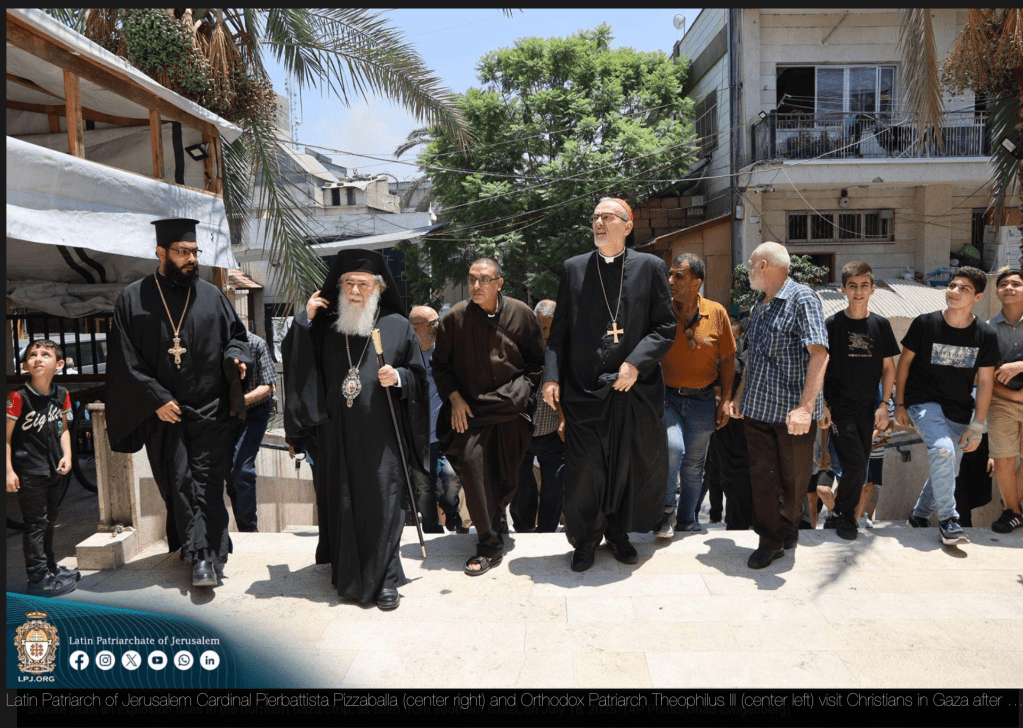Anschliessend telefonierte der Papst mit dem Lateinischen Patriarchen von Jerusalem, Kardinal Pierbattista Pizzaballa, als der sich auf den Weg nach Gaza machte, um mit Vertretern anderer Kirchen die beschädigte katholische Kirche zu besuchen. Er wurde gemeinsam mit dem Orthodoxen Patriarchen Theophilius III herzlich in der christlichen Enklave des Gazastreifens begrüsst. Auf dem Gelände der einzigen katholischen Kirche in Gaza leben teilweise mehr als 500 Personen, die von Ordensschwestern und Priestern betreut werden. Die Delegation aus Israel versprach, dafür zu sorgen, dass Lebensmittel und dringend benötigte humanitäre Hilfsstoffe sowie Medikamente geliefert werden.