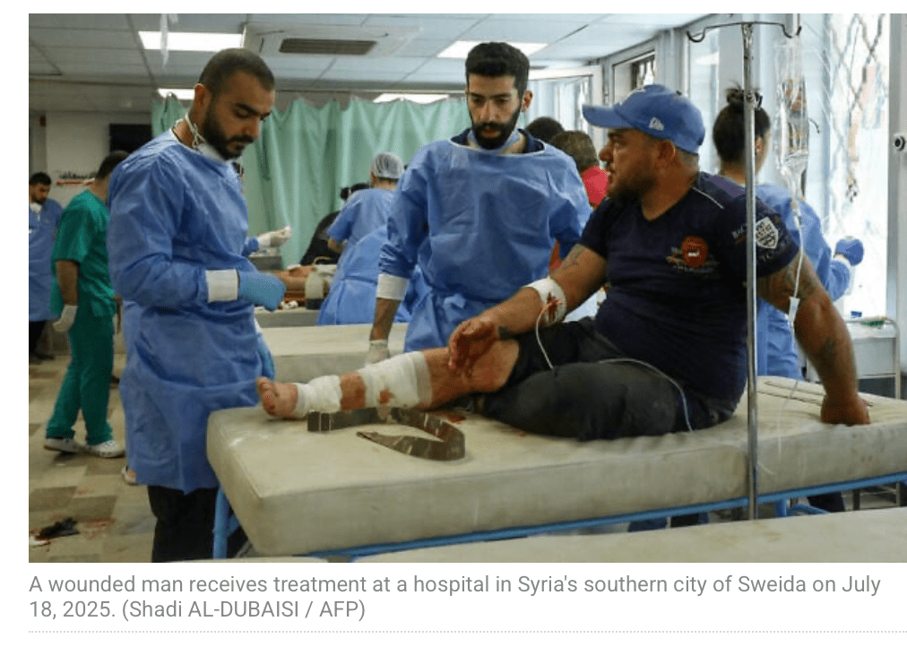 Ebenfalls Lebens- und humanitäre Hilfsmittel und medizinische Hilfsstoffe in Höhe von NIS 2 Millionen hat das israelische Aussenministerium der drusischen Stadt Sweida zugesagt. Wie und bis wann die Hilfe dorthin kommen soll, wurde nicht bekannt. Israel hat den syrischen Sicherheitskräften mitgeteilt, dass sie innerhalb von 48 Stunden das Gebiet um Sweida verlassen müssen. Sie hatten ihre Operation aufgenommen, als die Kämpfe zwischen Drusen und Beduinen wieder aufflammten. Seit Montag wurden im Spital mehr als 400 Leichname eingeliefert, die Pathologiesäle sind bereits überfüllt.