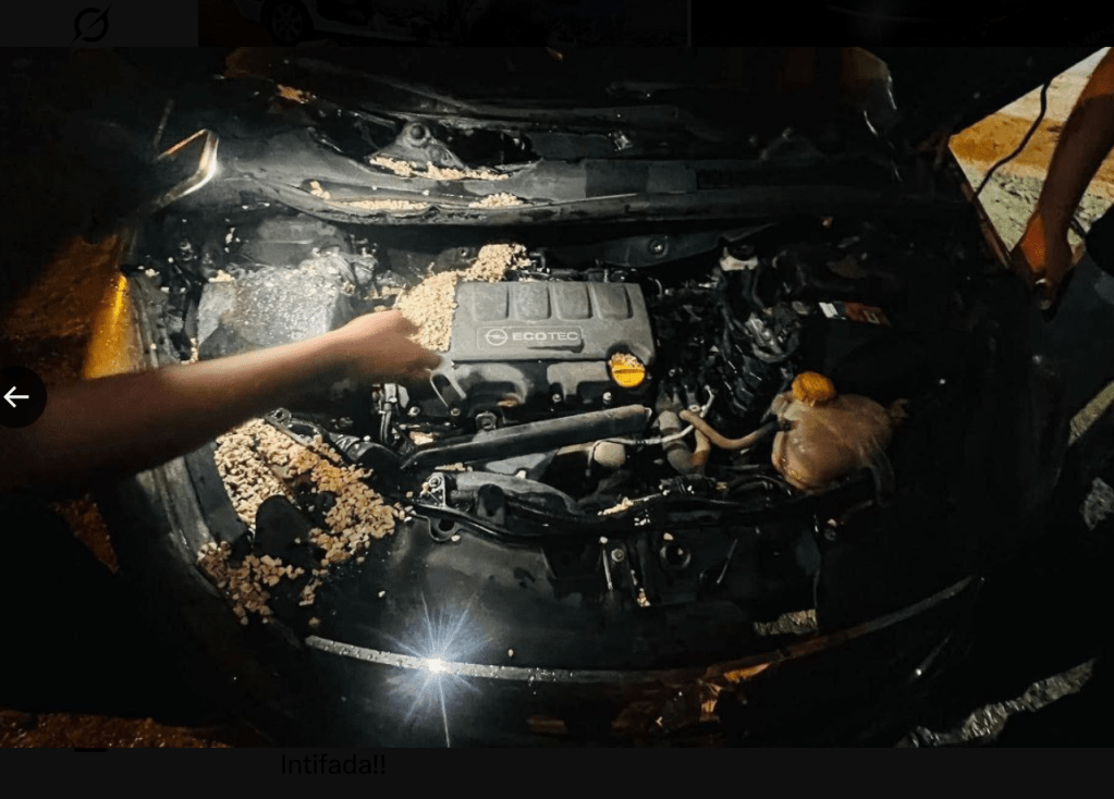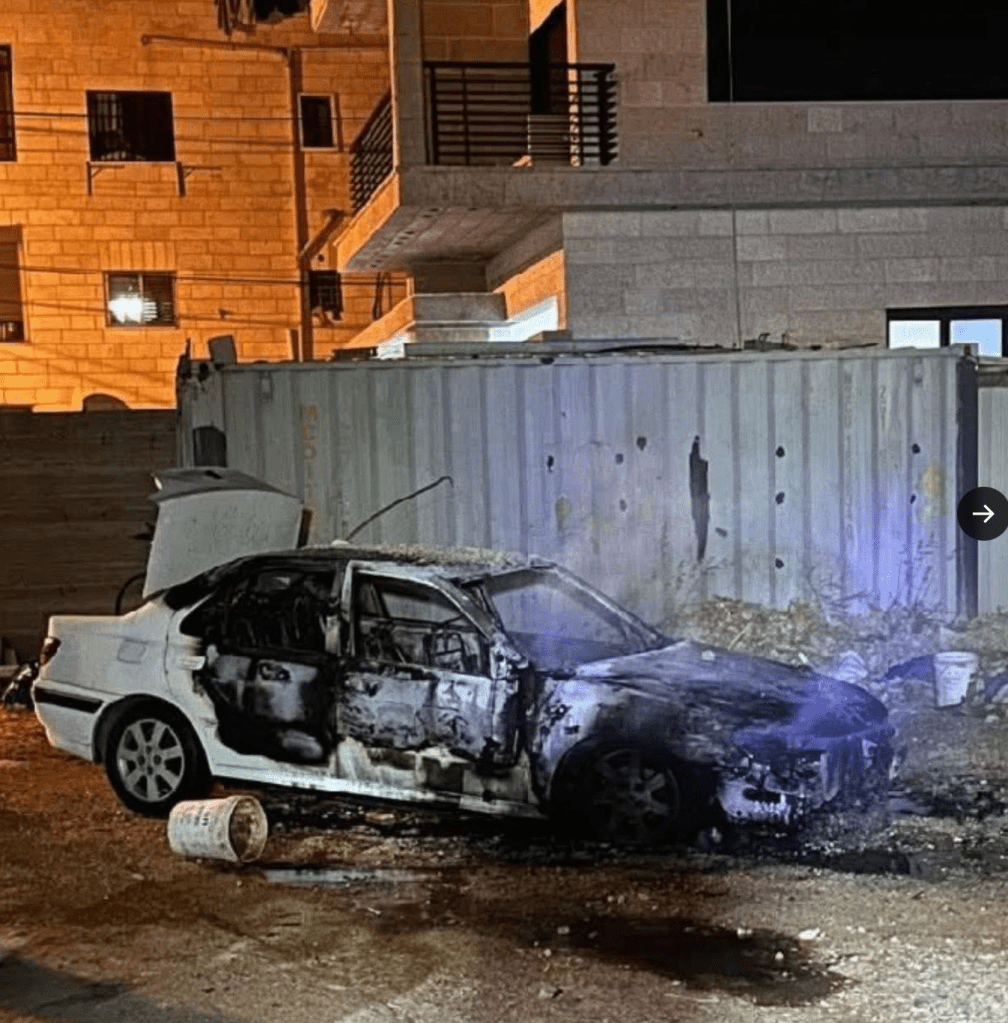 Jüdische Siedler-Terroristen zündeten in der Nacht einige Fahrzeuge in Beitin in der Nähe von Ramallah an. Auf einige Wände sprühten sie das Wort ‘Rache’. Es gab keine Verletzten. Beim verspäteten Eintreffen der Polizei wurden die Täter nicht mehr angetroffen, sodass wie üblich keine Festnahmen erfolgten.