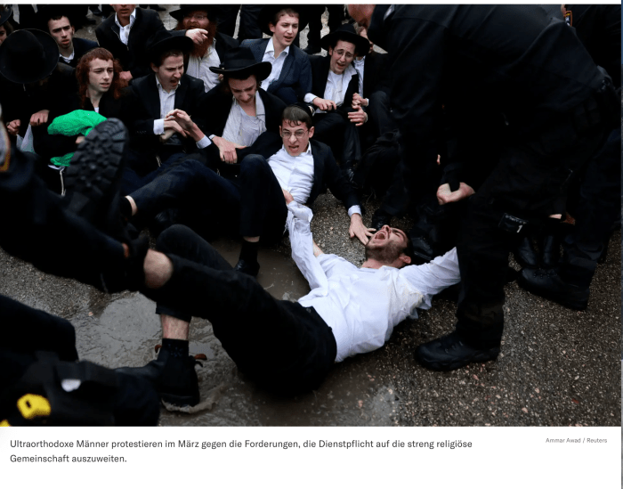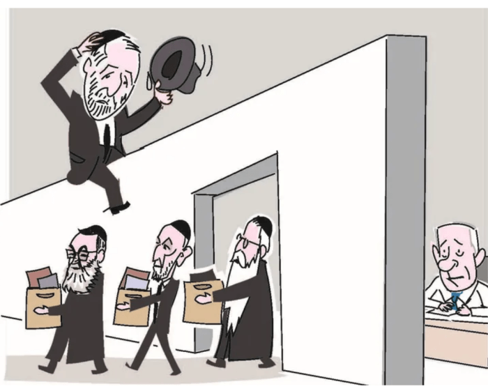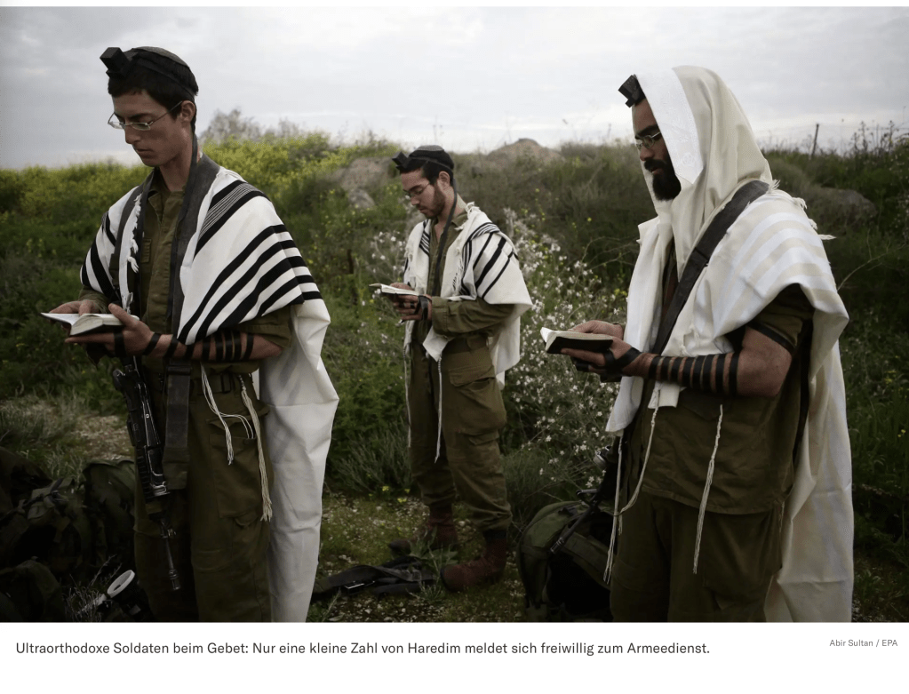 Seit der Angelobung hängt über Netanyahu das Damokles-Schwert, fest in der Hand der orthodoxen Parteien. Netanyahu hat ihnen versprochen, den alten Status, versprochen im Jahr 1948 von Ben-Gurion, wiederherzustellen. Der besagt, dass Haredim a priori vom Wehrdienst ausgenommen sind und nicht einberufen werden. Damals waren es nur wenige Hundert Männer, die das betraf, heute machen die Haredim etwa 13 % der Bevölkerung aus. Im Jahr 2023 sollten 66.000 von ihnen den Dienst in der IDF aufnehmen. Die Zahl derer, die kamen, ist verschwindend gering. Der IDF fehlen dringend Tausende Soldaten. Es ist nicht zu verstehen, warum säkulare Männer immer wieder in den Reservedienst eingezogen werden und sich Sorgen um ihren Beruf oder ihre Studien machen müssen. Und auf der anderen Seite Haredim, die wohl subsidiert vom Staat in ihren Yeshiwot sitzen und sich um nichts Sorgen machen müssen, ausser, ob sie genügend viele Zigaretten bei sich haben, um den Tag zu überstehen. Im Juni 2024 entschied der OGH einstimmig, dass es nun genug sei mit der Rücksichtnahme, die durch nichts begründet ist. Der Wehrdienst trifft nun de facto jeden. Bisher gelang es Netanyahu immer wieder, die Koalitionspartner mit meist finanziellen Häppchen ‘bei Laune zu halten’. Doch jetzt, nur kurze Zeit vor dem Beginn der Sommerpause, hatten sie die Nase voll.