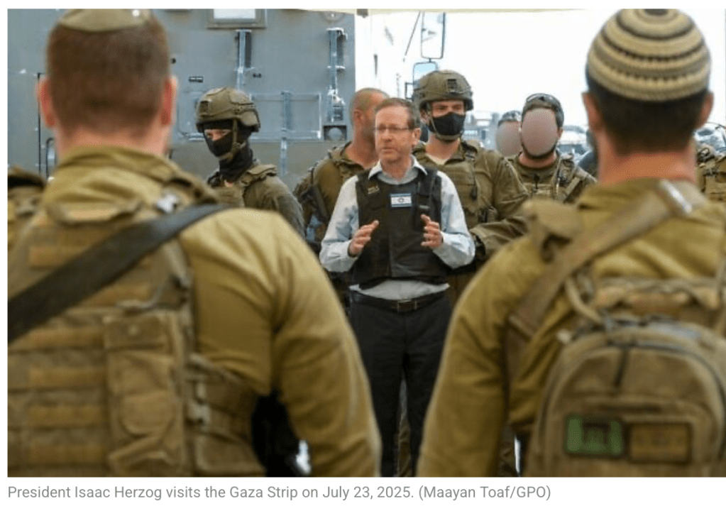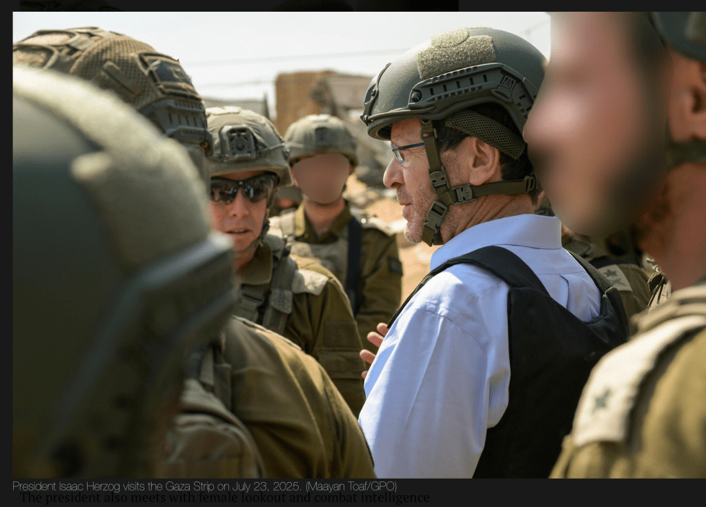 Präsident Isaac Herzog absolvierte gestern seinen ersten Besuch in Gaza seit dem Beginn des Krieges am 7. Oktober nach dem Massaker der Hamas gegen Israel. In Bezug auf die Bemühungen um die Freilassung der noch in Gaza festgehaltenen Geiseln sagt Herzog zu Soldaten im Gazastreifen: «Ihr kämpft dafür, die Realität zu ändern und unsere Geiseln zurückzubringen – das ist die dringendste Aufgabe. Dank eurer Aktionen und denen aller, die im Gazastreifen kämpfen, finden derzeit intensive Verhandlungen statt. Ihr seid diejenigen, die unsere Geiseln nach Hause bringen werden.» Herzog besuchte auch eine Verteiler-Stelle der umstrittenen GHF und hielt fest:«Wir handeln hier und leisten humanitäre Hilfe in Übereinstimmung mit dem Völkerrecht. Diejenigen, die versuchen, diese Hilfe zu sabotieren, sind die Hamas und ihre Aktivisten, die zu allem bereit sind, um unsere Streitkräfte daran zu hindern, Infrastrukturen zu zerstören, die uns und unseren Zivilisten schaden könnten.» Herzog bedankte sich bei den Reservisten und betonte beim Treffen mit haredischen Soldaten des Nahal-Corps, dass er Veränderungen in der haredischen Gesellschaft beobachte, die es ermöglichen, dass mehr junge Männer zur IDF kommen. Sein letzter Besuch galt den Soldatinnen der Einheit 8.200. Die jungen Frauen hatten nach dem Massaker geklagt, dass ihre wichtigen Hinweise auf Vorgänge im Gazastreifen vor dem 7. Oktober nicht gehört worden waren. Erfreulicherweise gaben die Frauen an, dass sich seit dem 7. Oktober Vieles zum Besseren gewandelt hat.