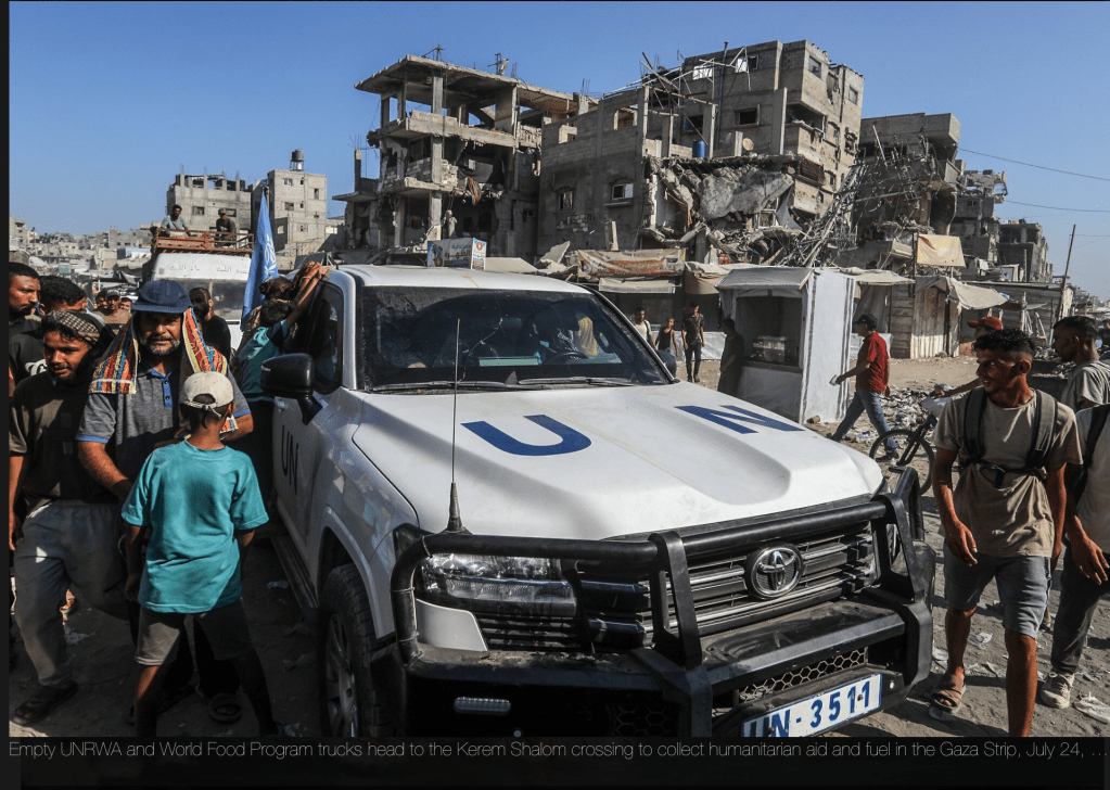 Die UNWRA teilte dem UN-Sicherheitsrat mit, dass ihre Gelder maximal dazu ausreichen, ihre Aufgaben bis zum Ende des laufenden Jahres aufrechtzuerhalten. Die UNWRA sieht es als ihre Aufgabe an, die etwa 2.5 Millionen Palästinenser in Gaza, Ostjerusalem sowie Samaria und Judäa zu unterstützen. Weiterhin zählt sie auch 3.0 Millionen Menschen in Syrien, Jordanien und dem Libanon zu den von ihnen Betreuten. Nachdem klar wurde, wie viele UNWRA-Mitarbeiter in Gaza Mitglieder der Hamas sind, sich aktiv am Massaker beteiligt haben und auch Geiseln in Gaza festgehalten haben oder immer noch festhalten, sprach Israel ein Verbot aus. Entsprechend diesem Verbot musste die UNWRA ihre Niederlassung in Ostjerusalem räumen und darf dort nicht mehr aktiv werden. Das Verbot gilt nicht für Samaria und Judäa sowie für Gaza.