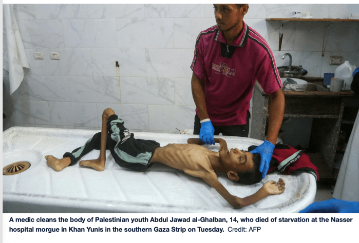 ‘Human Rights Watch’ klagt Israel an, ‘routinemässig ‘ palästinensische Zivilisten zu töten, die nur auf der Suche nach Nahrung sind. «Von den USA unterstützte israelische Streitkräfte und private Unternehmen haben, mit der GHF ein mangelhaftes, militarisiertes System zur Verteilung von Hilfsgütern eingerichtet, das die Verteilung von Hilfsgütern regelmässig in blutige Massaker verwandelt.» Mindestens 859 Palästinenser seien zwischen dem 27. Mai, als GHF ihre Arbeit aufnahm und dem 31. Juli getötet worden, die meisten von den Israelis. «Die israelischen Streitkräfte hungern nicht nur palästinensische Zivilisten absichtlich aus, sondern erschiessen sie nun auch fast täglich, während sie verzweifelt nach Nahrung für ihre Familien suchen.» Die IDF, die sofort hätte reagieren müssen, schweigt.