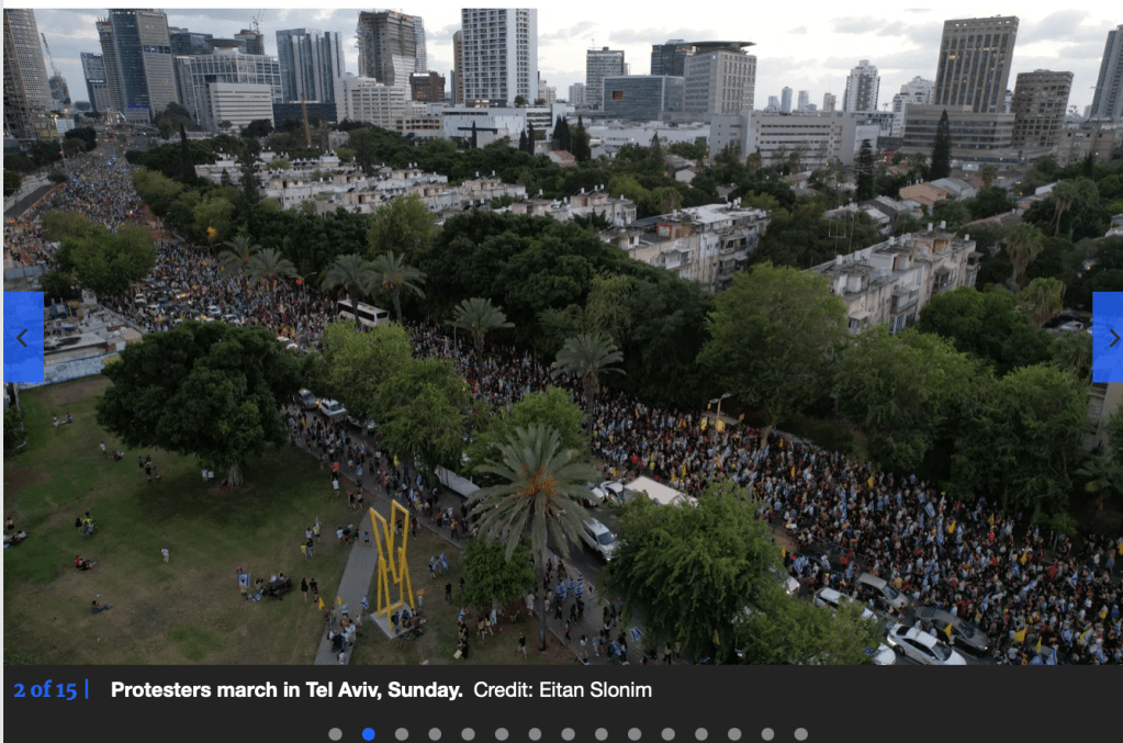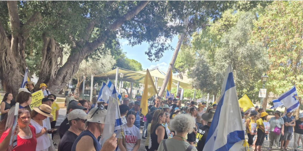 Bei hochsommerlichen Temperaturen begannen heute um 06:29 die Demonstrationen, die von zahlreichen Streiks begleitet werden. Um 06:29 hatte am 7. Oktober 2023 das Massaker der Hamas und anderer Terror-Organisationen begonnen. In diesen Minuten, gegen 20 Uhr, beginnt die Hauptveranstaltung beim Hauptquartier des Verteidigungsm 500.000 im Zentrum von Tel Aviv eingefunden. Die Organisatoren erklärten, dass sich im Laufe des Tages mehr als 2.5 Millionen Menschen den Demonstrationen in irgendeiner Form angeschlossen haben.