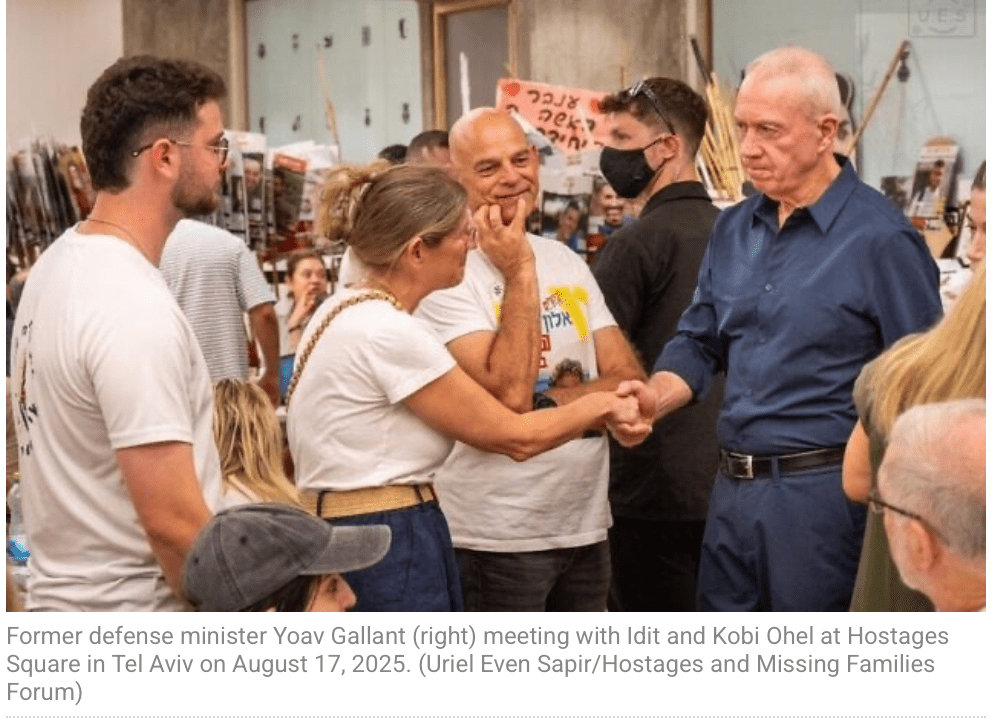 Am frühen Abend besucht auch der ehemalige VM Yoav Gallant den Platz der Geiseln. Er traf sich dort mit den anwesenden Familienangehörigen, gab aber kein Statement ab.