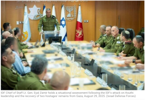 Generalstabschef Zamir erläuterte gestern bei einer Lagebesprechung die aktuellen Operationen. Er betonte vor allem den Erfolg des vorgestrigen Angriffes auf die strategischen Ziele der Houthi-Terroristen im Jemen. «Die Houthis agieren als weiterer terroristischer Ableger des Iran, greifen Israel weiterhin an und bedrohen die regionale und internationale Stabilität. Unsere Botschaft ist klar – wir werden dies nicht tolerieren», sagte er.