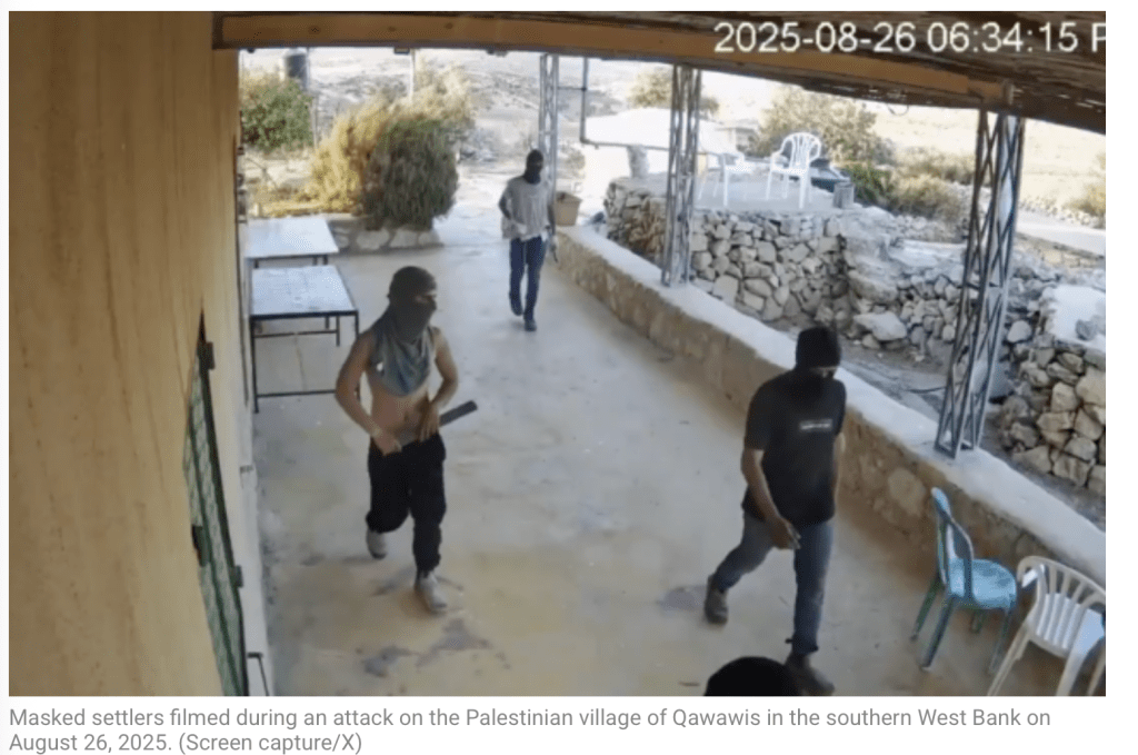 Bereits am Montagnachmittag kam es zu einem schweren Vorfall im arabischen Dorf Gwawis in den Hügeln südlich von Hebron in Judäa. Drei maskierte jüdische Siedler-Terroristen stürmten in das Dorf und prügelten zunächst mit Baseball-Schlägern auf die Bewohner des Ortes ein. Sie benutzten auch Pfefferspray, zerstörten drei Sicherheitskameras, Autoscheiben und neun Solar-Panels. Vier Palästinenser und drei israelische Aktivisten wurden verletzt, einige von ihnen mussten zur Versorgung in ein Spital evakuiert werden. Bevor die Sicherheitskräfte eintrafen, hatten sich die Terroristen bereits zurückgezogen. Unter den wachsamen ‘Wegschau-Augen’ vom rechtsextrem-nationalistischen Ben-Gvir ist eben alles möglich