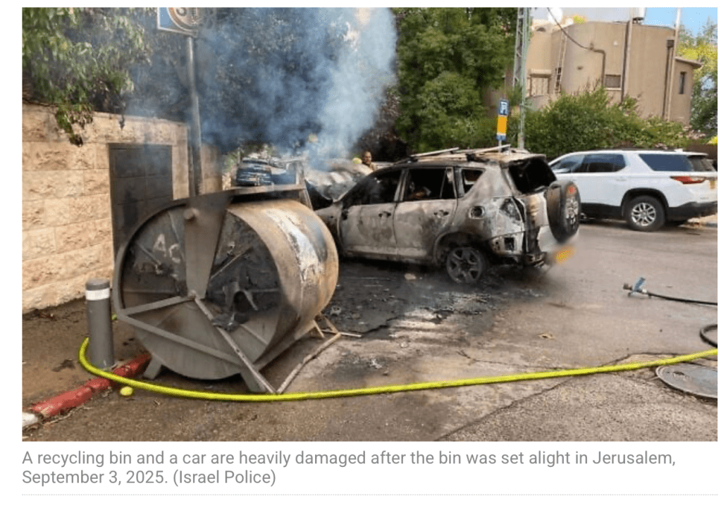 Drei Männer, einer von ihnen 80 Jahre alt, demonstrierten gestern auf eine sehr eigenwillige Art für den Geisel-Deal. Einer zündete gestern mehrere Papiercontainer in der Nähe des Wohnhauses von Netanyahu in Jerusalem an. Das Feuer zerstörte ein dicht neben einem Container geparktes Auto. Die Bewohner einer Wohnung mussten aufgrund der starken Rauchentwicklung evakuiert werden. Der andere zündete einen Stapel Autoreifen, der vor dem Haus gelagert war, in dem sich das Büro des PM befindet. Ein dritter Demonstrant kletterte mit 12 weiteren auf das Dach der Nationalbibliothek, wo er eine Rauchgranate zündete. Alle Demonstranten befinden sind in Untersuchungshaft. Das zerstörte Auto gehört einem Reservisten, der derzeit zum wiederholten Mal in Gaza aktiv ist. Ein spontanes Crowd- Funding im Internet brachte sehr schnell etwa US$ 50.000, um den ihm entstandenen Schaden zu begleichen.
