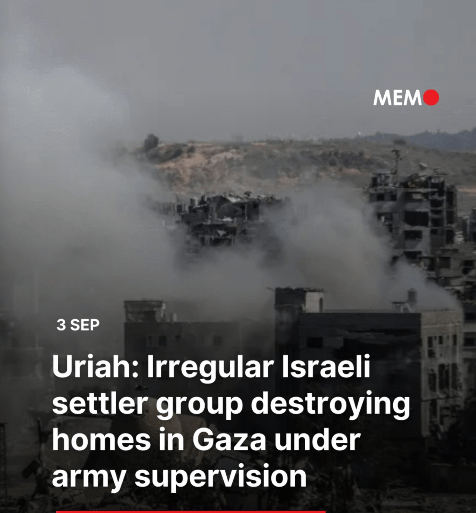 Besonders auffallend und schon seit mehr als einem Jahr in Gaza, die Gruppe ‘Uriah Force’. Sie sind überall, zuletzt in Khan Younis. Einer ihrer Anführer ist wahrscheinlich: Bezalel Zini, der Bruder des designierten Chefs des Shin-Bet, Generalmajor (res.) David Zini!