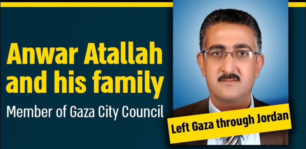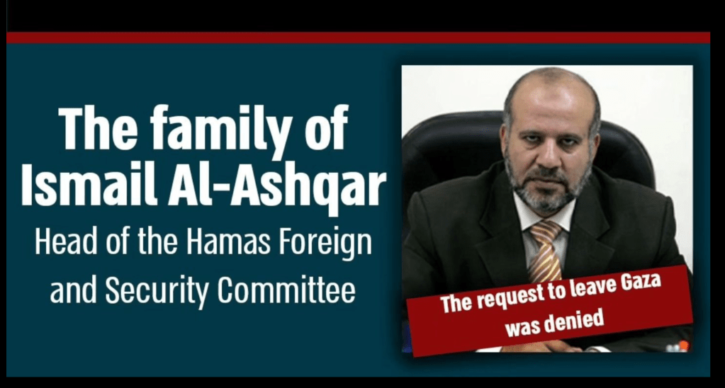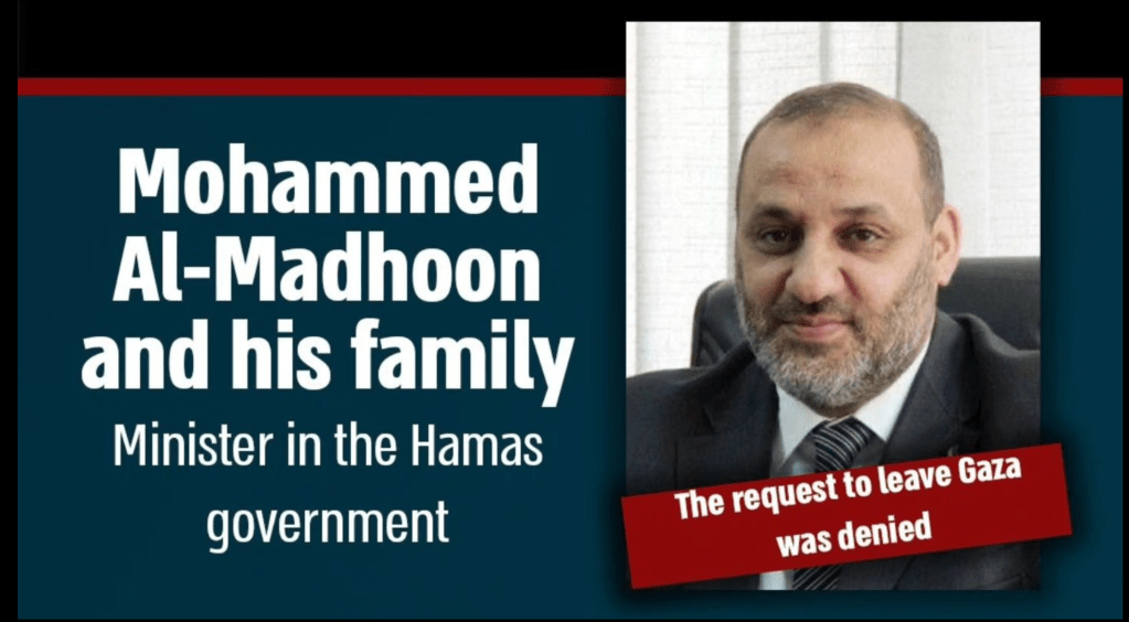 Die noch in Gaza aktiven Hamas-Führer versuchen offenbar, ihre Familien aus der Kampfzone ins Ausland zu bringen. Maj. General Ghassan von COGAT gab bekannt, dass auf der Facebook Seite ‘al-Munasia’ (die nicht mehr erreichbar ist) diese Versuche dokumentiert wurden. So hat vor zwei Wochen Anwar Atallah, Mitglied des Stadtrats von Gaza-City, samt seiner Familie Gaza über Jordanien in ein unbekanntes Drittland verlassen. Weniger Glück hatten Mohammed Madhoun, Minister der Hamas-Regierung, Ismail Ashqar, Vorsitzender des Ausschusses für auswärtige Angelegenheiten und Sicherheit der Hamas und Alaa al-Din Batta, Vorsitzender des Regierungsausschusses der Hamas, deren Anträge auf Ausreise von Israel abgelehnt wurden. Warum die Antragsteller nicht von den israelischen Behörden festgenommen wurden, ist mir unklar, ausser die Anträge auf ‘freiwillige Ausreise’ wurden online gestellt….