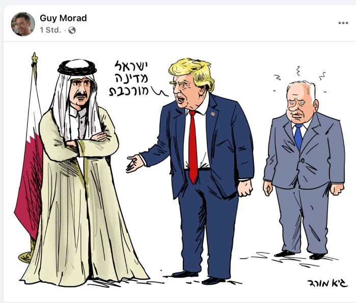 Trump erklärte, Israel müsse im weiteren Umgang mit Katar ‘sehr vorsichtig’ sein. «Meine Botschaft [an Israel] lautet, dass sie sehr, sehr vorsichtig sein müssen. Sie müssen etwas gegen die Hamas unternehmen, aber Katar ist ein grossartiger Verbündeter der Vereinigten Staaten.» Gestern Abend hatte Trump gemeinsam mit Steve Witkoff ein Abendessen für den Scheikh von Doha, Mohammed bin Abdulrahman al-Thani, gegeben. Nach dem Essen betonte Trump: «Der Scheikh ist ein wunderbarer Mensch», und fügte hinzu: «Ich habe ihm gesagt, Katar braucht eine bessere Öffentlichkeitsarbeit, da die Leute so schlecht über das Land reden, was sie nicht tun sollten.» Genau diese verbesserte und gut bezahlte ‘Öffentlichkeitsarbeit’ beschäftigt derzeit die Gerichte in Israel bis hinauf zum OGH. Engste Mitarbeiter Netanyahus sind in den Fall ‘Katargate’ verstrickt.
